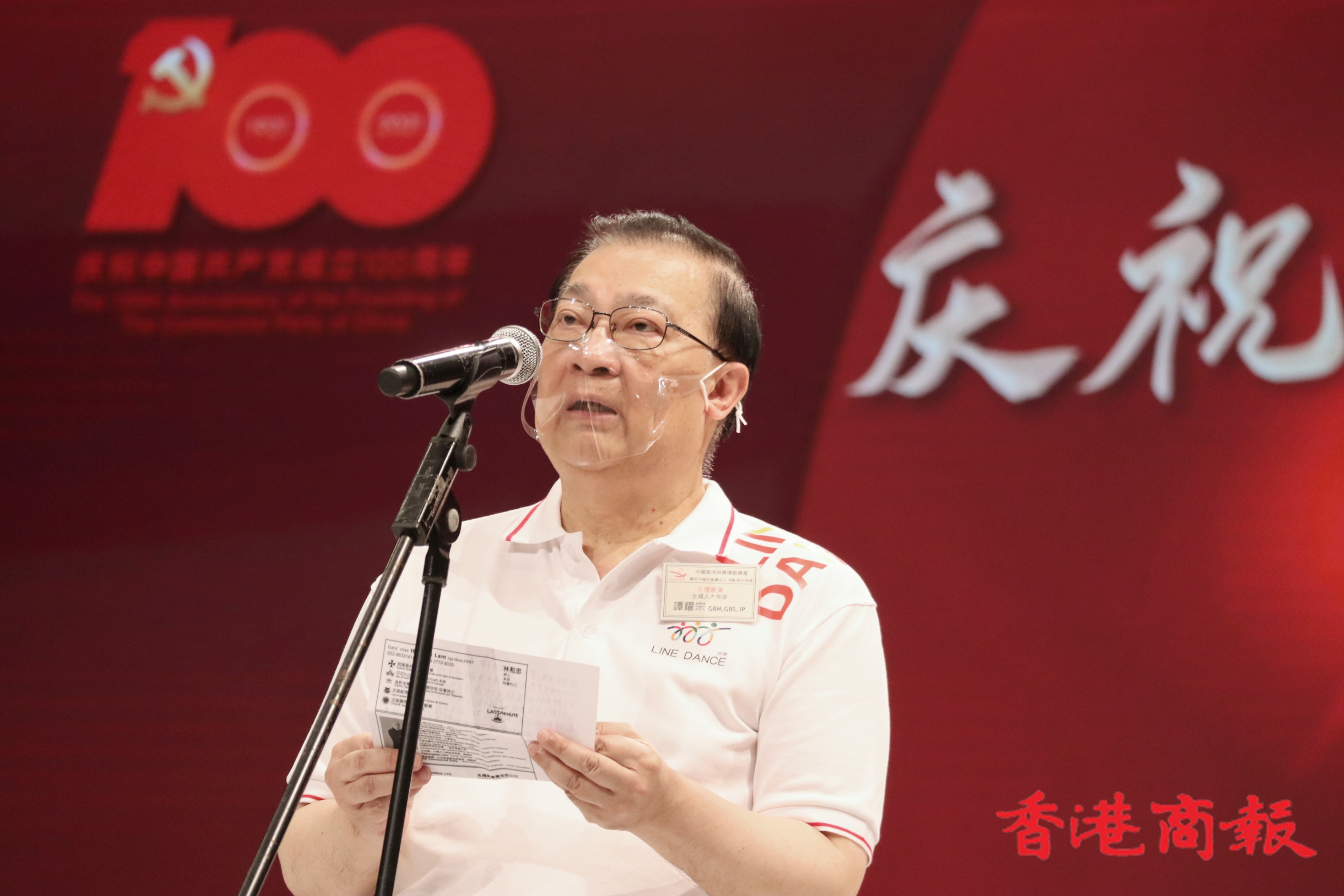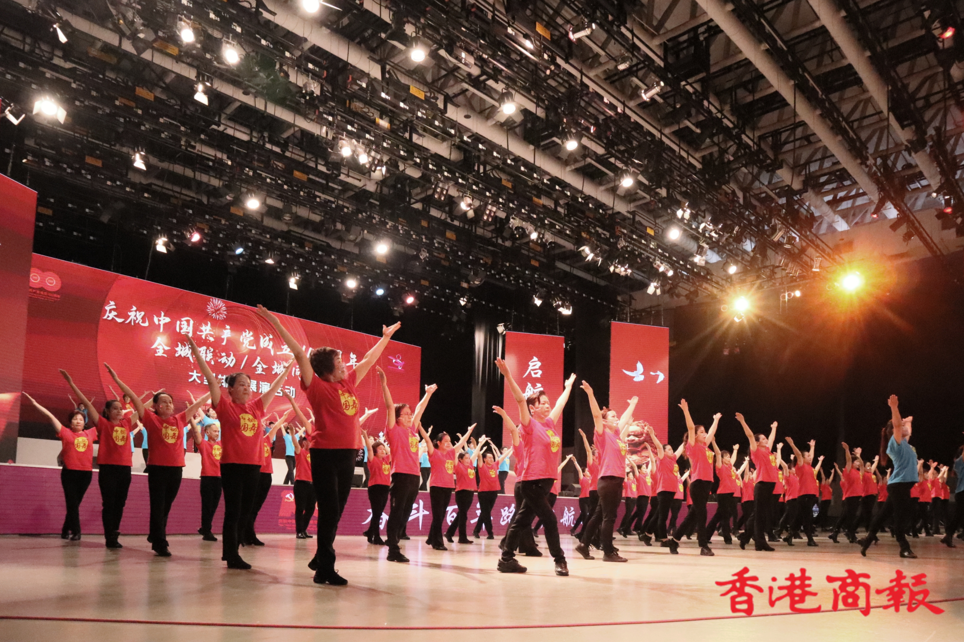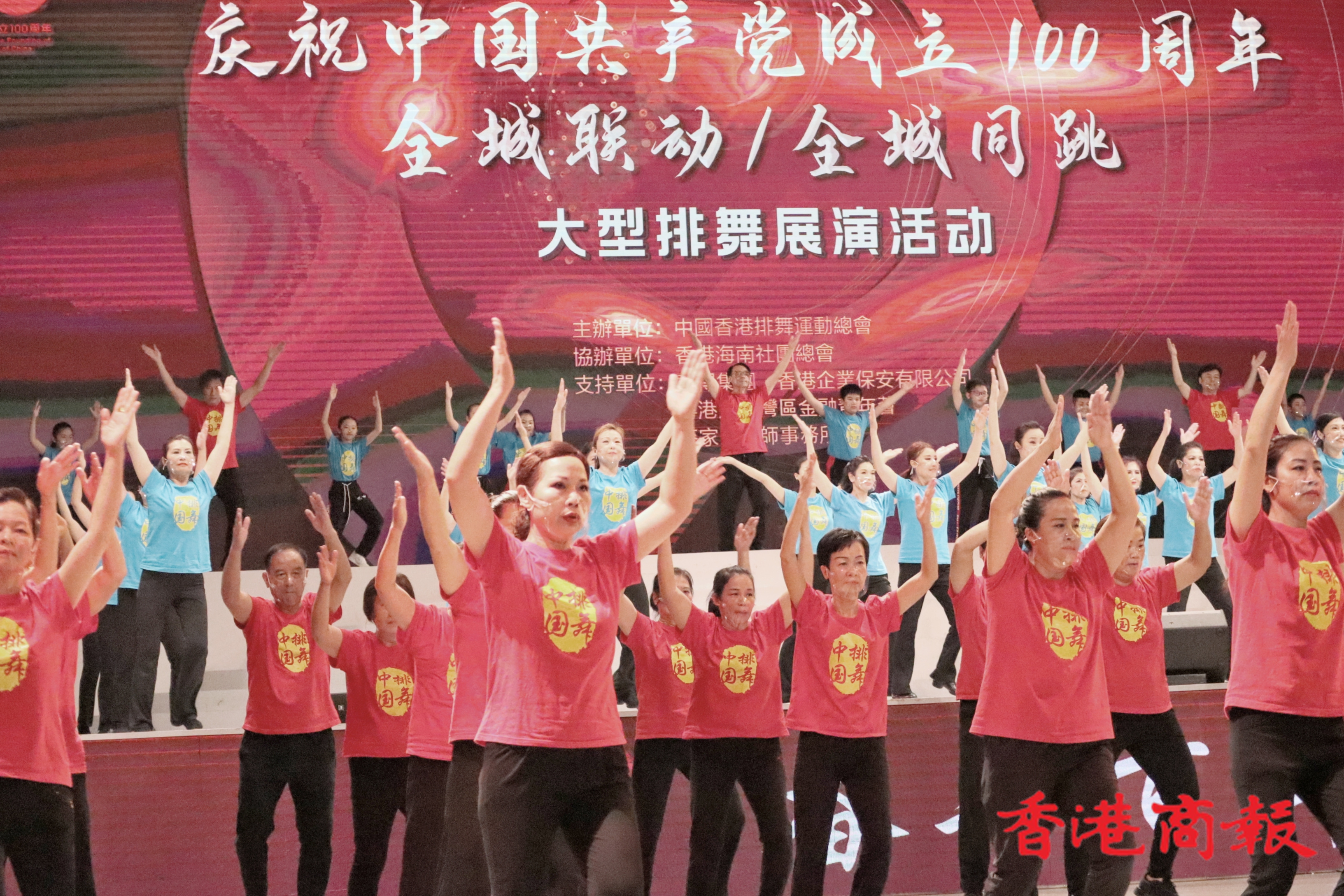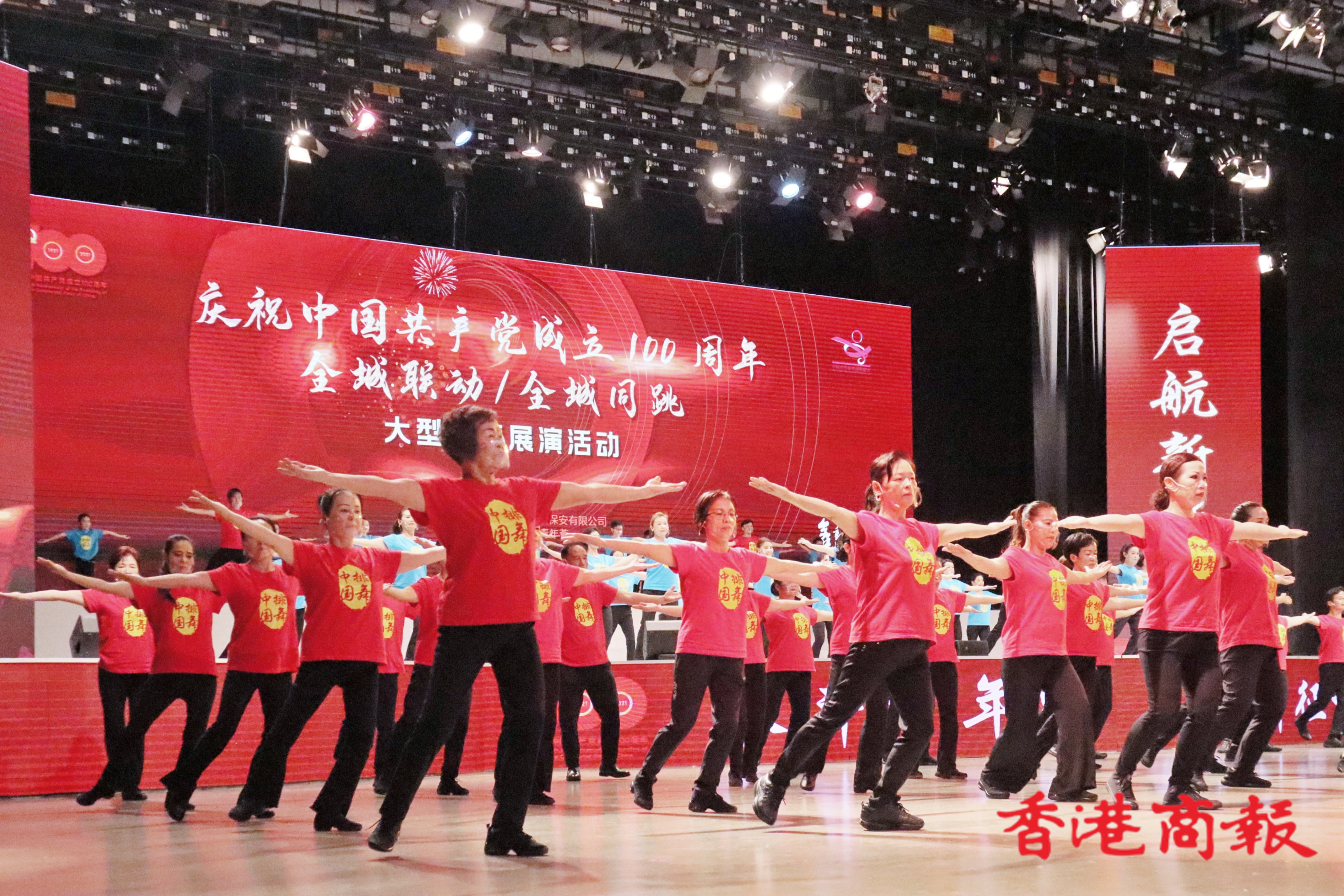為慶祝中國共產党成立100周年,中國香港排舞運動總會今日主辦「慶祝中國共產党成立100周年全城聯動/全城同跳」大型排舞展演活動,多位嘉賓出席,包括民政事務局局長徐英偉、全國人大常委譚耀宗、民建聯主席李慧琼等。