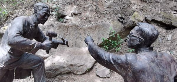 一天午後,清華大學外語系學生趙德尊用地質系採樣工具在一塊青灰色的岩石上刻鑿出一個蒼勁有力的「保」字,陸平發現並接過他手中的工具,二人相互協作在岩石上鑿出「保衛華北」四個大字,表達了當時學生們心中最熱切的呼聲。
