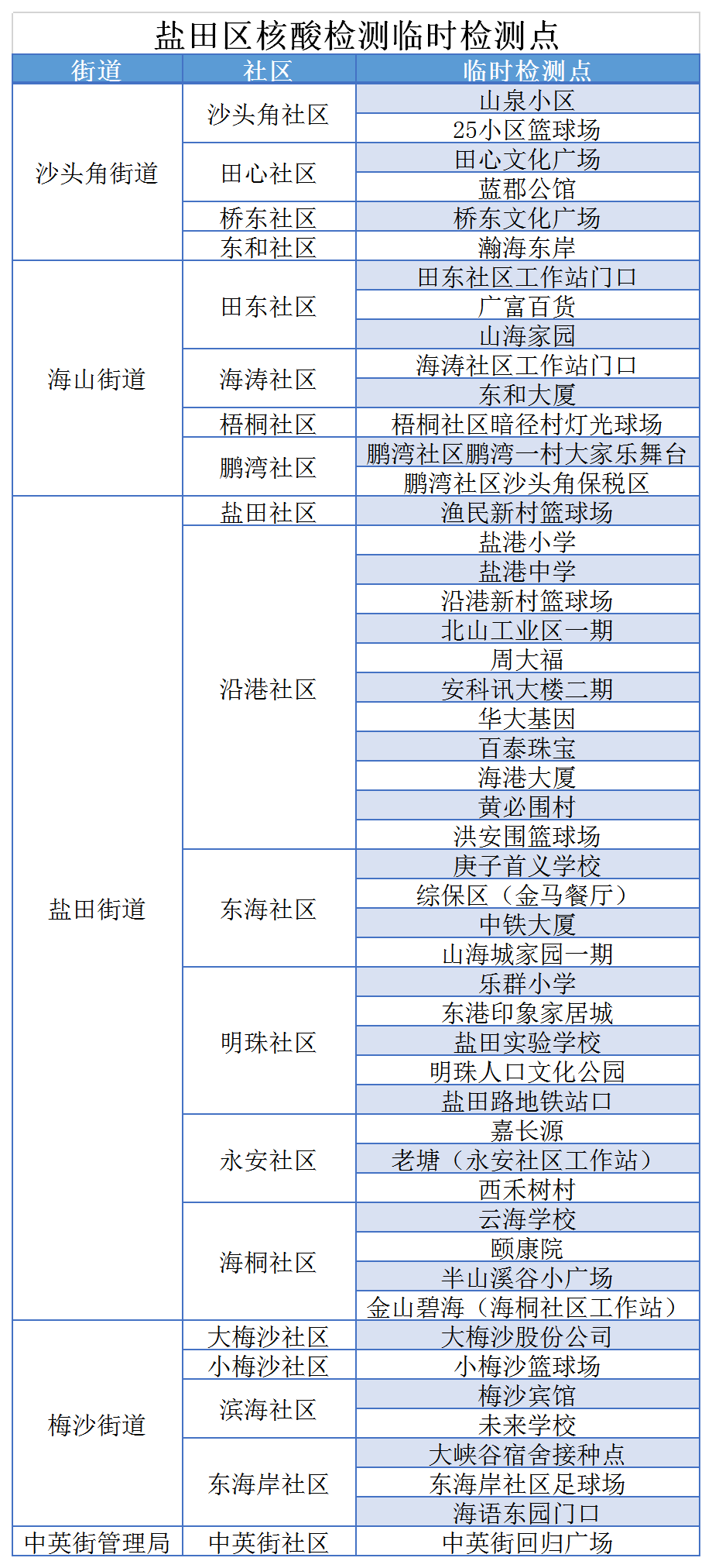 「發現美好鹽田」微信公眾號5月31日消息,鹽田區新冠肺炎疫情防控指揮部30日表示,為進一步強化新冠肺炎疫情防控措施,鹽田區新冠肺炎疫情防控指揮部決定在全區開展第三輪全員核酸檢測工作。現就有關事項通告如下: