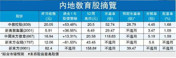 「十四五」規劃中提出要加強人才教育培養,鼓勵職業教育的現代化發展,職業教育成為新關注點。另一邊廂,內地針對民辦教育機構的政策措施或短期落地,市場料有助消除行業憂慮,推動板塊重拾升軌。但揀教育股不要跟風盲從,還應關注個股本身背景和盈利能力。