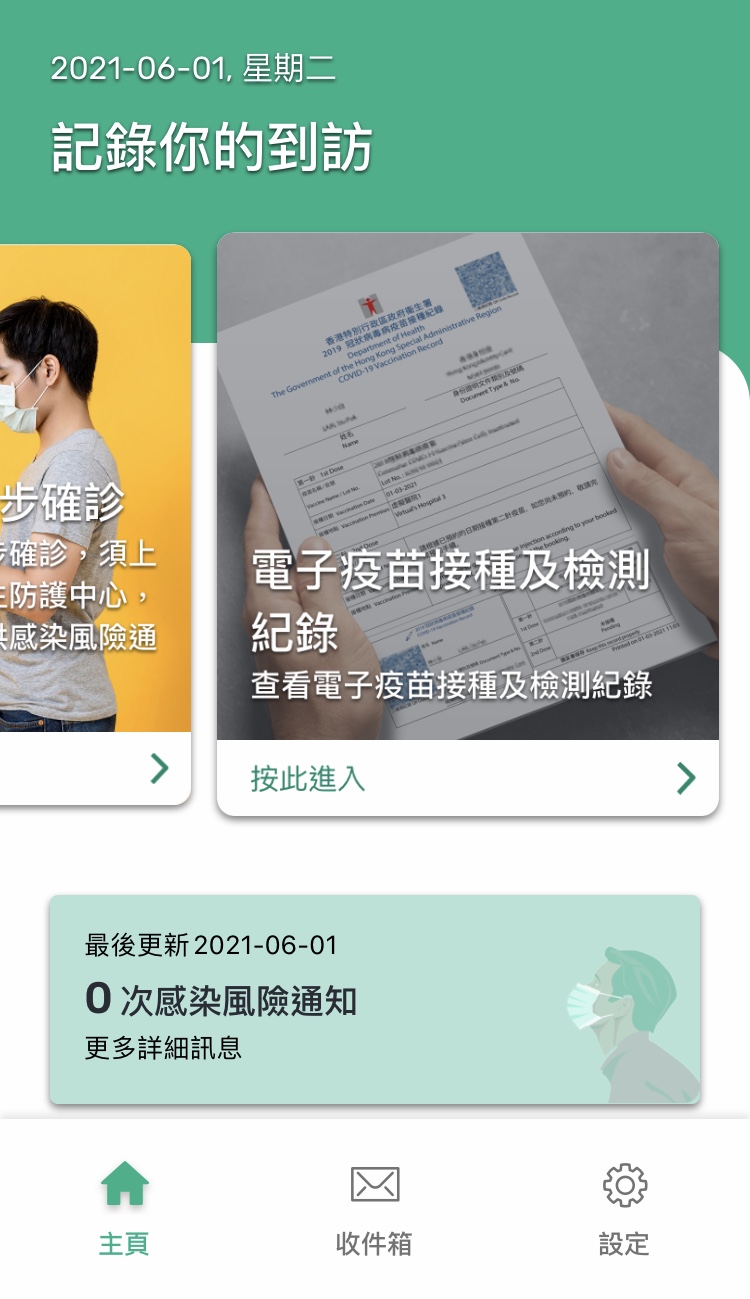 「安心出行」流動應用程式今日新增「電子疫苗接種及檢測紀錄」功能。