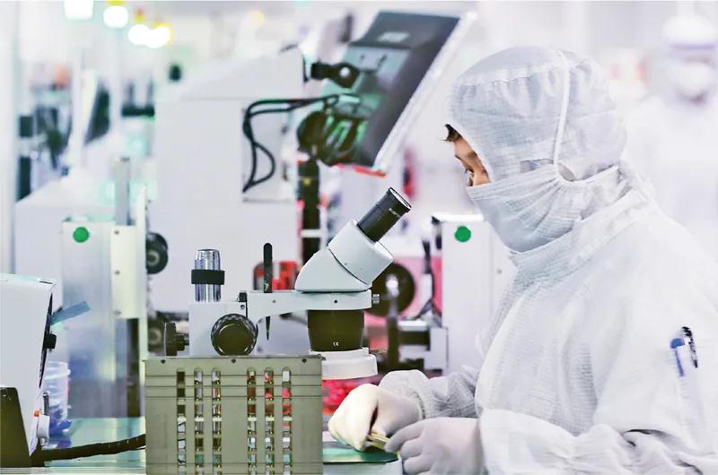 推進科技創新,加強基礎研究、強化戰略科技力量是關鍵,轉化應用、助推產業發展是目標。圖為2021年4月22日,在廣東省東莞市瑞谷光網通信股份有限公司潔淨的萬級無塵車間裏,自主研發的高精密自動化生產線一派繁忙。該公司是專業從事光通信傳輸領域的關鍵核心光器件、光模塊產品及自動化裝備的研發、生產和銷售的國家級高新技術企業。 人民圖片 張進剛/攝