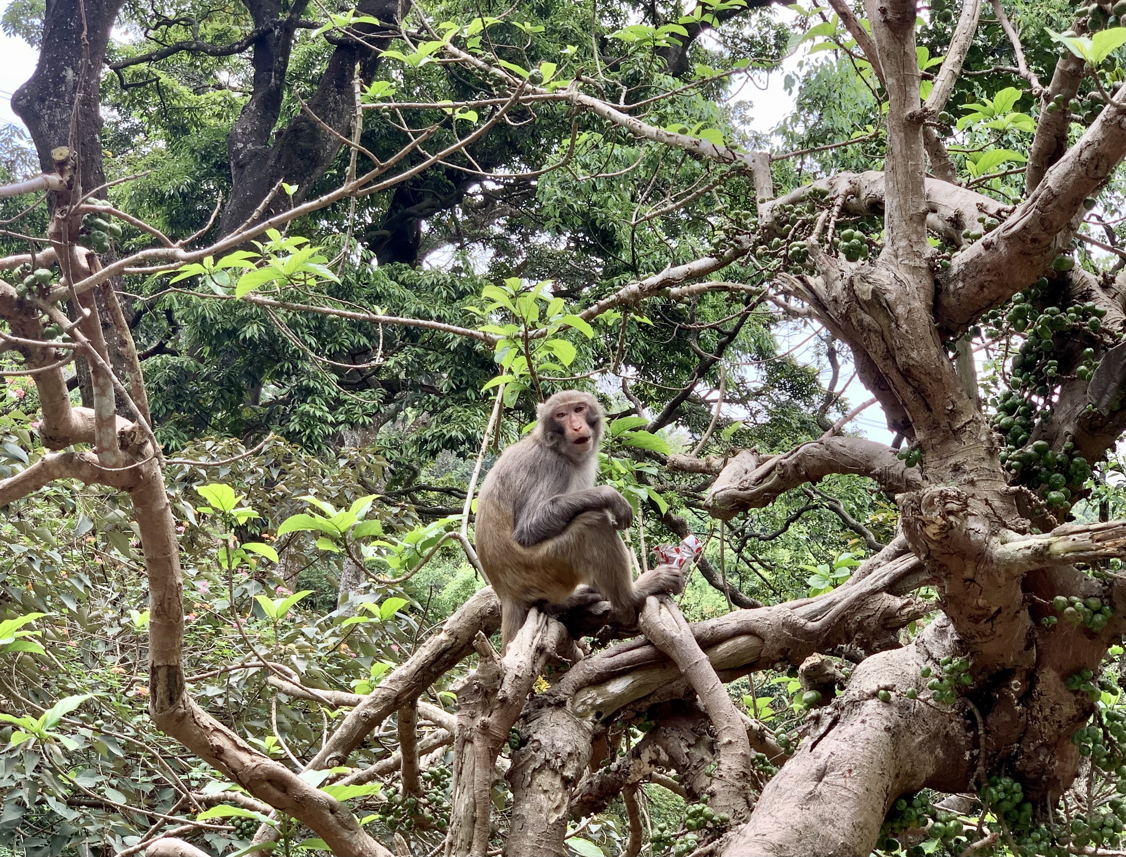 沿路能看見野生猴子吃路人餵的食物。