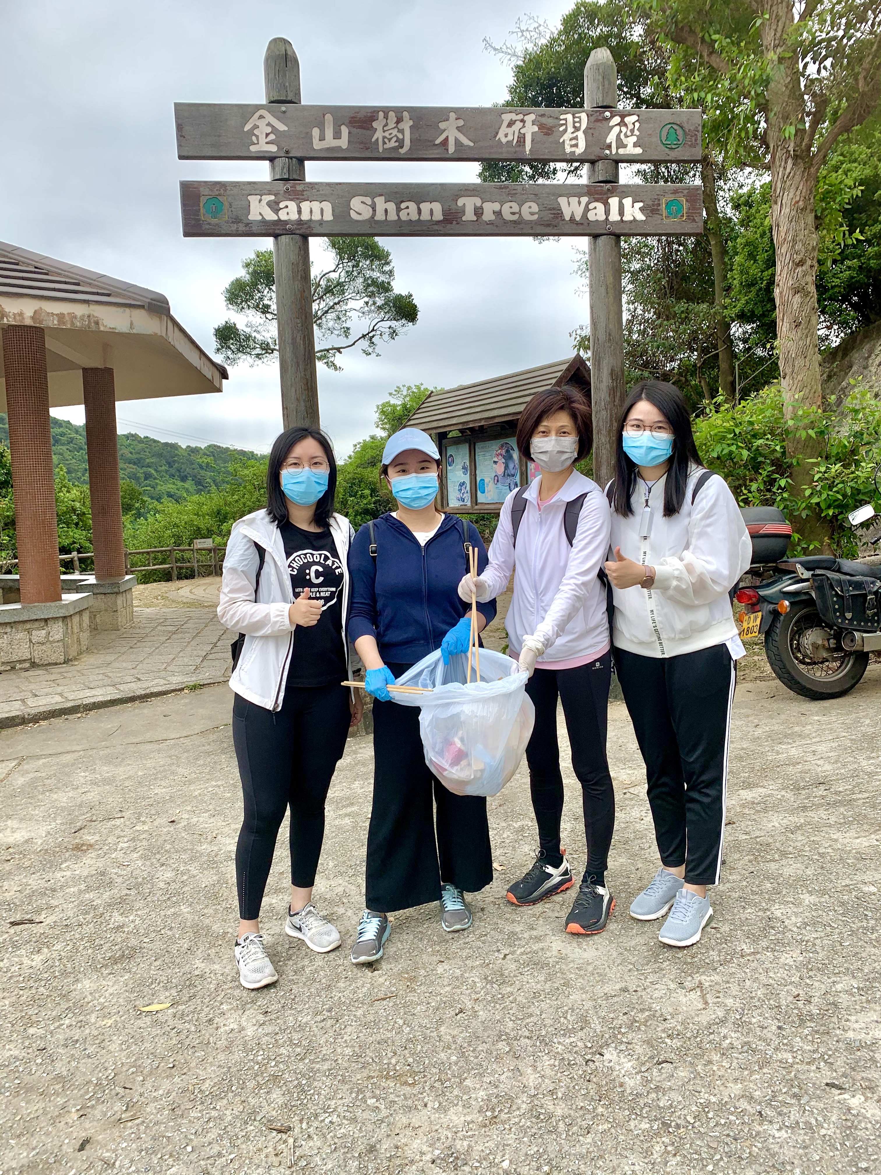 記者組隊到金山樹木研習徑清理垃圾。