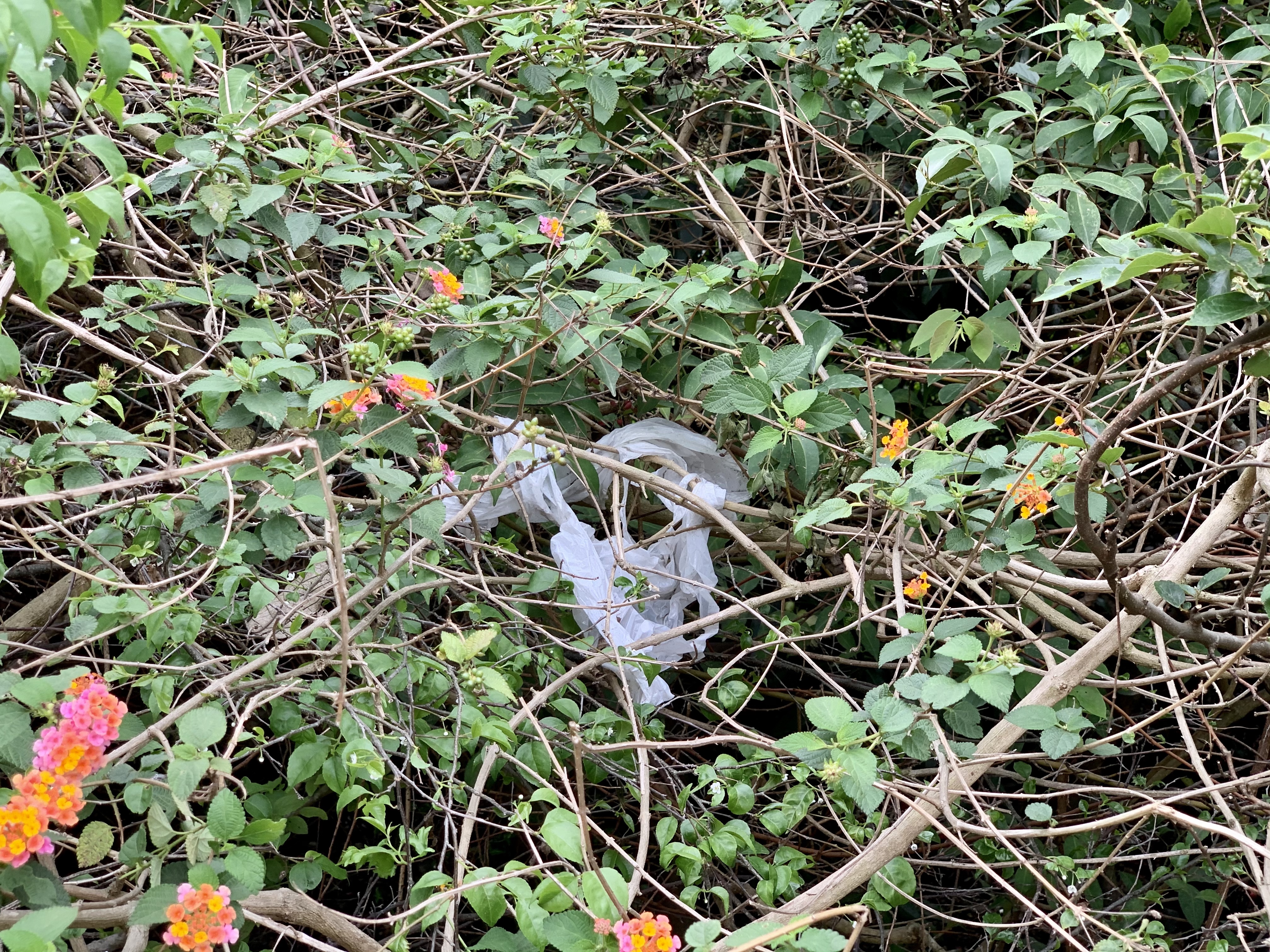 樹上掛著棄置的膠袋。