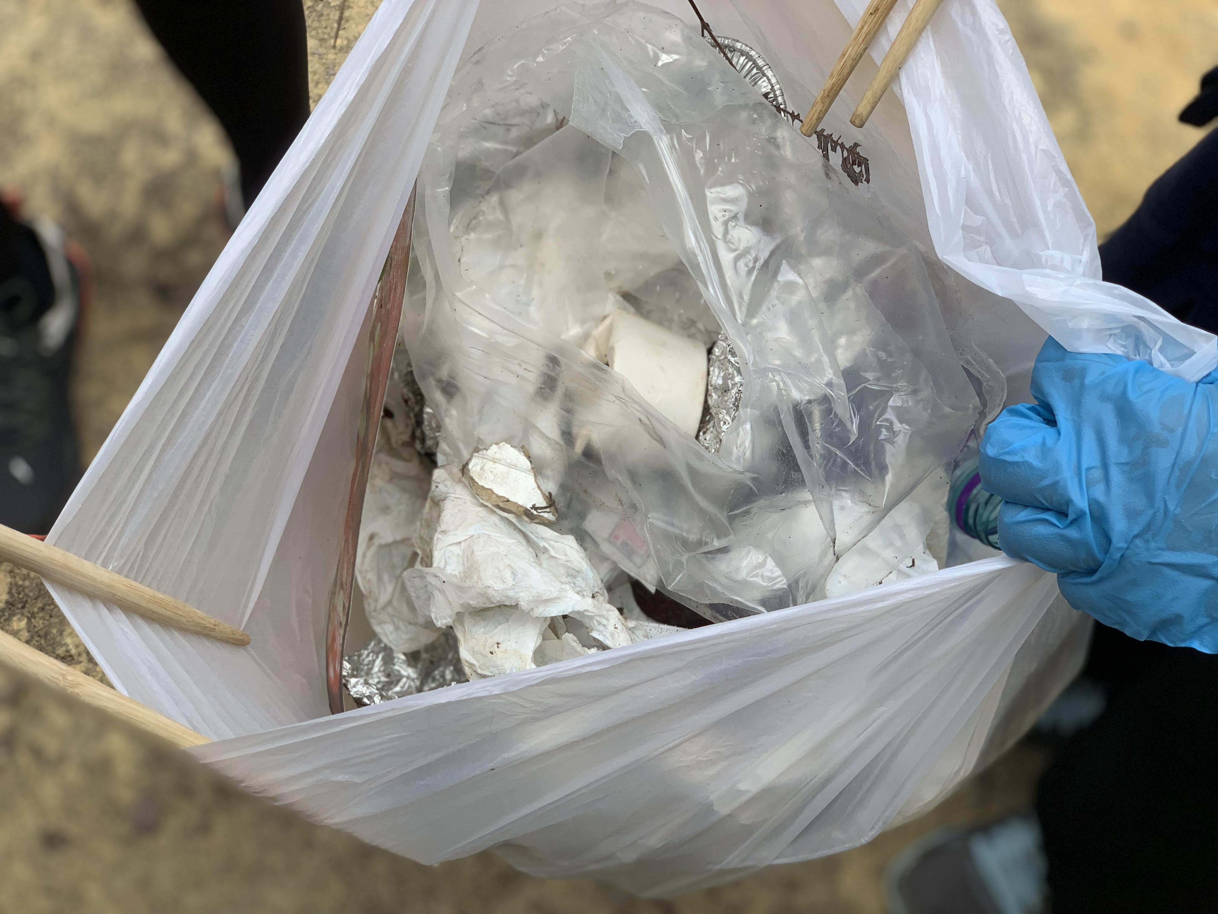 記者檢了滿滿一袋垃圾。