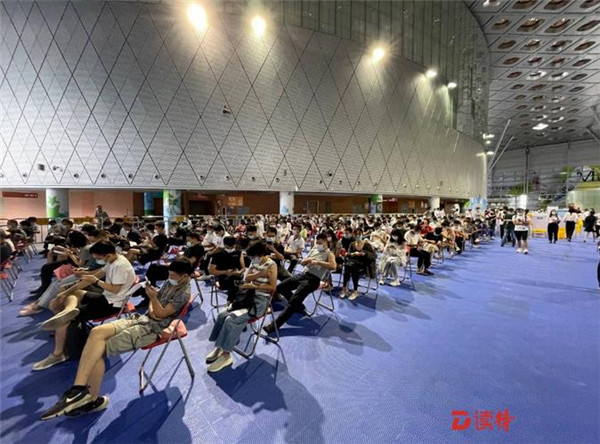 深圳灣體育中心內,市民正在有序登記接種深圳產疫苗。