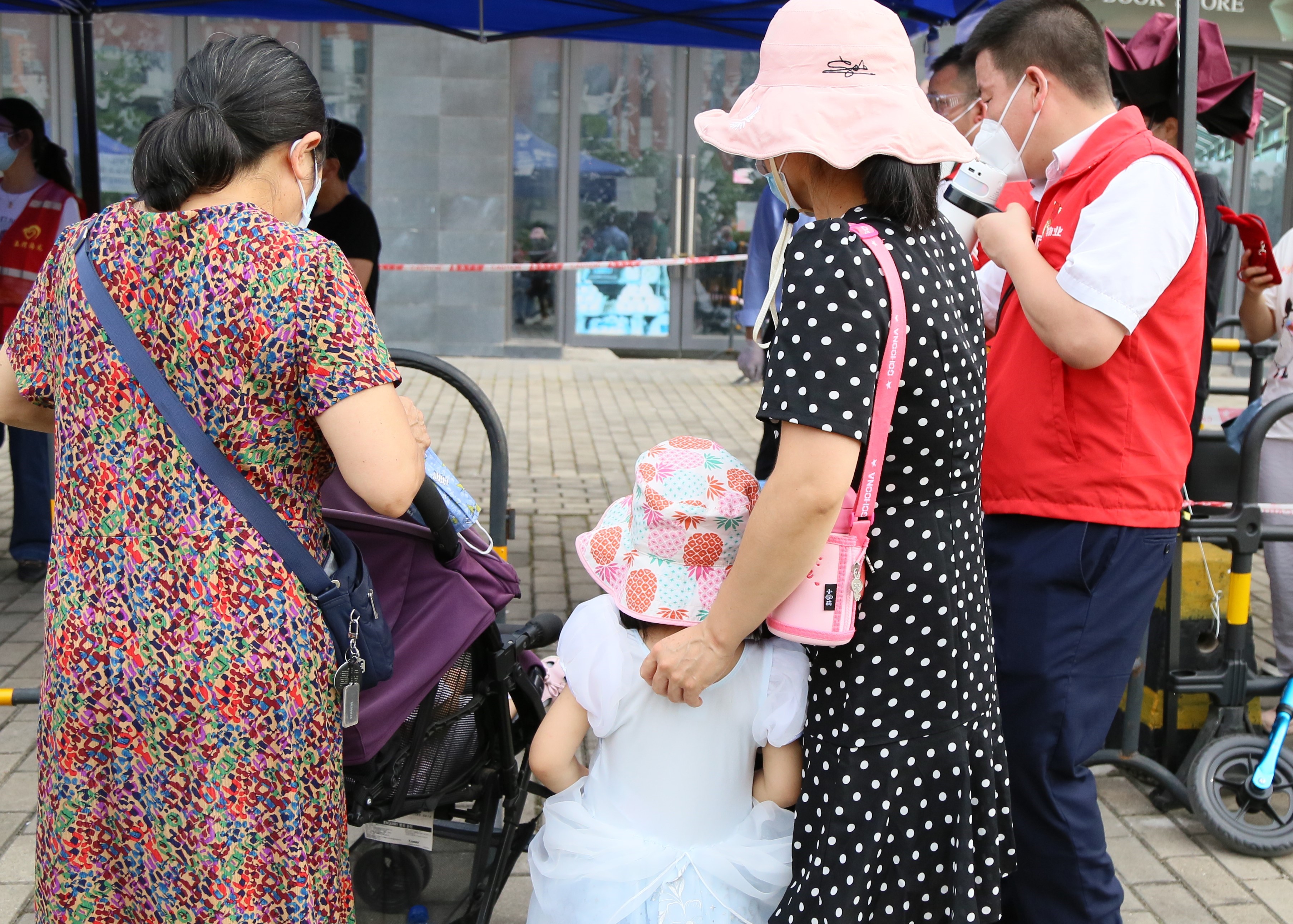 社區黨員志願者、奔赴海龍街支援的各兄弟單位同事、社工、小區物業工作人員等在現場提供排隊指引、掃碼錄入信息、操作諮詢等服務。「請大家保持一米間距。老人、小孩、孕婦請走綠色通道」海龍街在設置常規排隊通道之外,特地增設老婦幼等群體綠色通道,減少其排隊等待時間。病毒無情、人間有愛,一點一滴盡顯溫情關懷。無論何時,海龍街道及各社區始終以各位街坊為中心,全心全意做好服務。