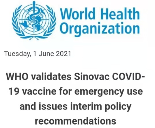 當地時間6月1日,世衛組織(WHO)宣布,北京科興中維生物技術有限公司研製的新冠滅活疫苗通過了評審,正式列入「緊急使用清單」(EUL)。