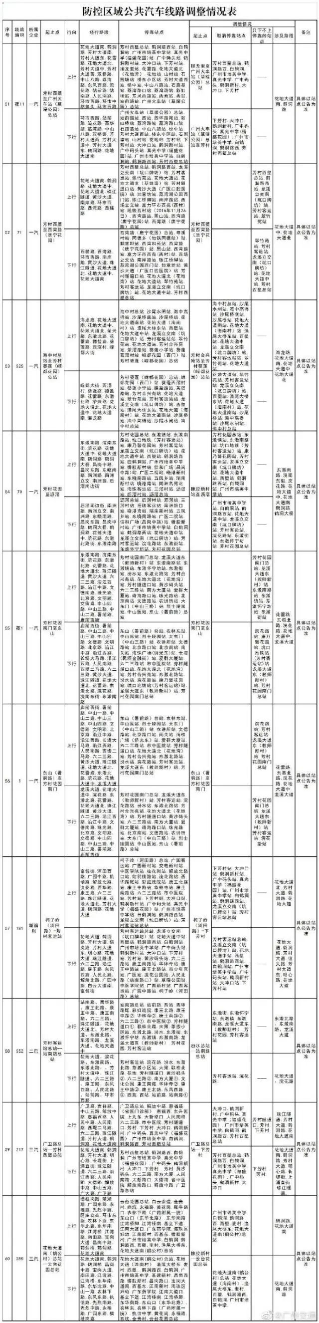 截至目前,防控區域內共有29條公交線路實施了暫停運營,40餘條公交線路取消停靠中南街道、白鶴洞街道區域站點,防控區域內的其他公交站點繼續實施乘客「只下不上」措施。