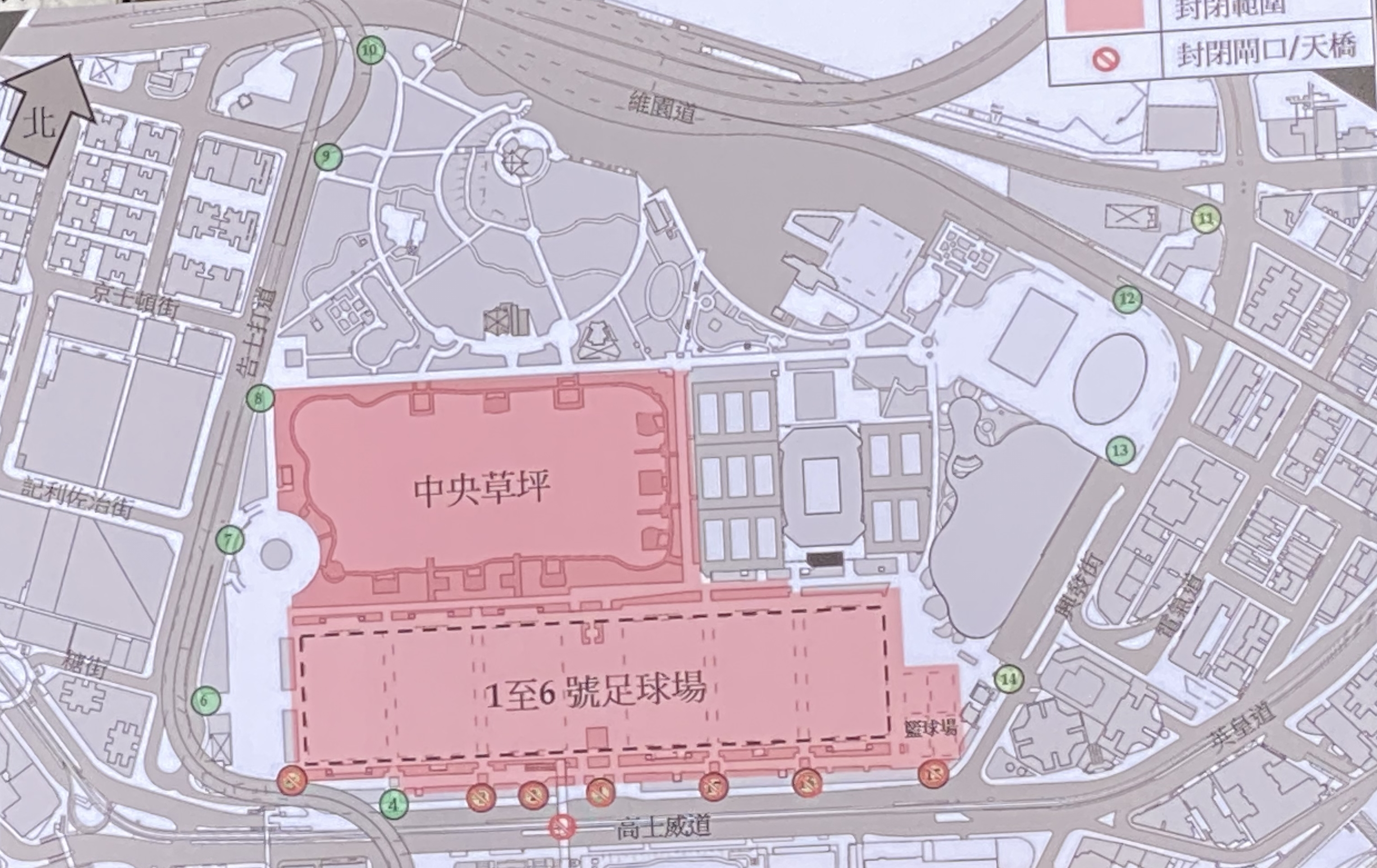 因應新冠肺炎疫情,警方反對支聯會今日舉行集會。警方今日(4日)下午在維園圍封多個足球場,並有大批警員到場戒備。