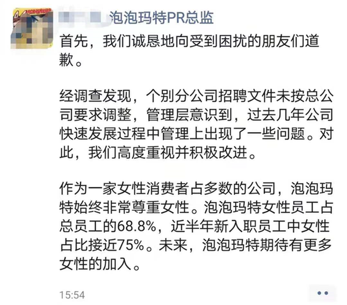 近日,有網友爆料,稱泡泡瑪特面試單要求填寫近期是否有生育計劃,且僅限女性,並要求填寫計劃時間。對此,泡泡瑪特方面回應稱,首先,我們誠懇地向受到困擾的朋友們道歉。經調查發現,個別分公司招聘文件未按總公司要求調整,管理層意識到,過去幾年公司快速發展過程中管理上出現了一些問題。對此,我們高度重視並積極改進。