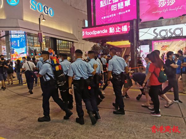 警方加大在铜锣湾维园一带的布防,呼吁市民不要参加未经准许的非法集结。