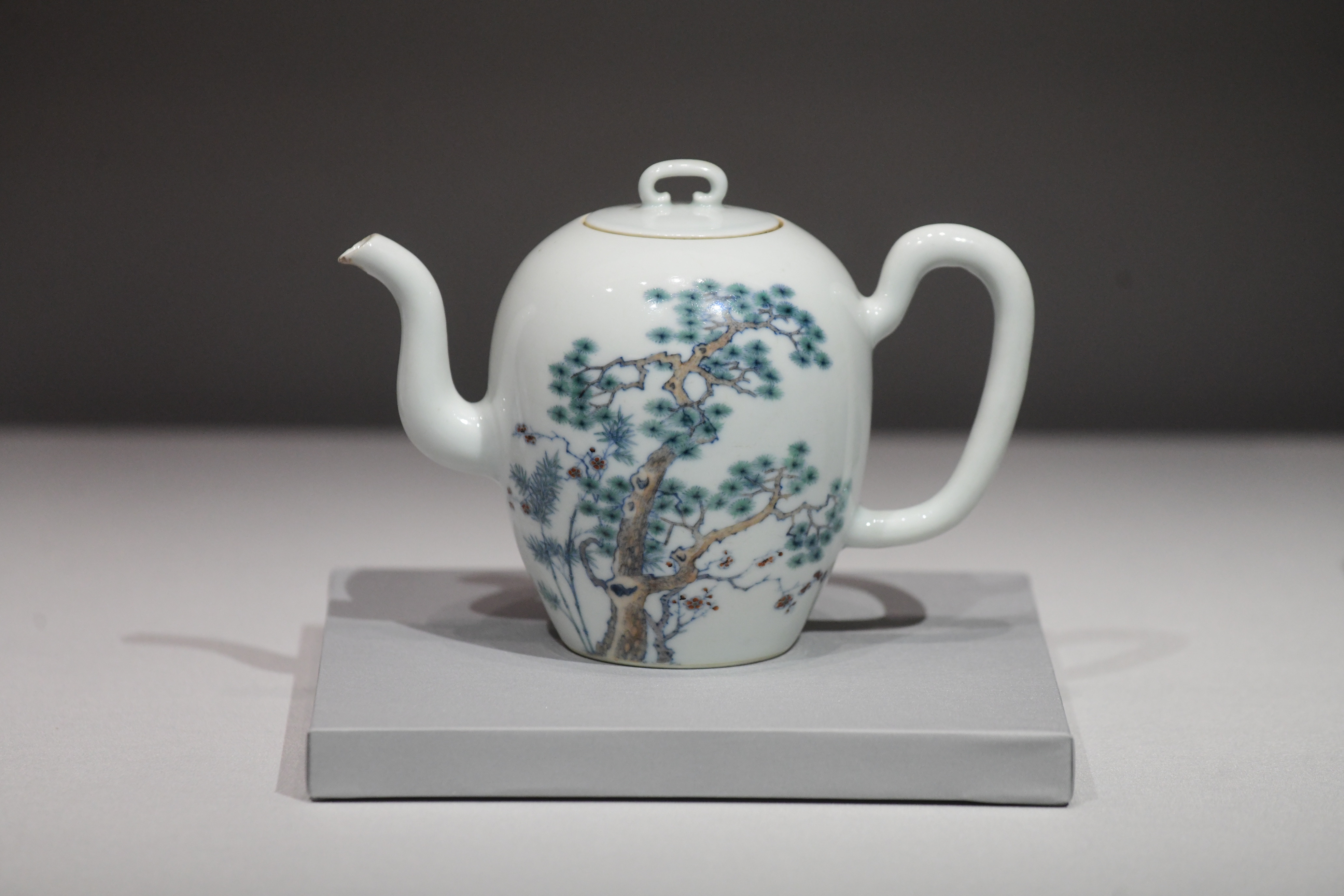 「鬥彩歲寒三友壺」,清雍正(1723至1735年)。