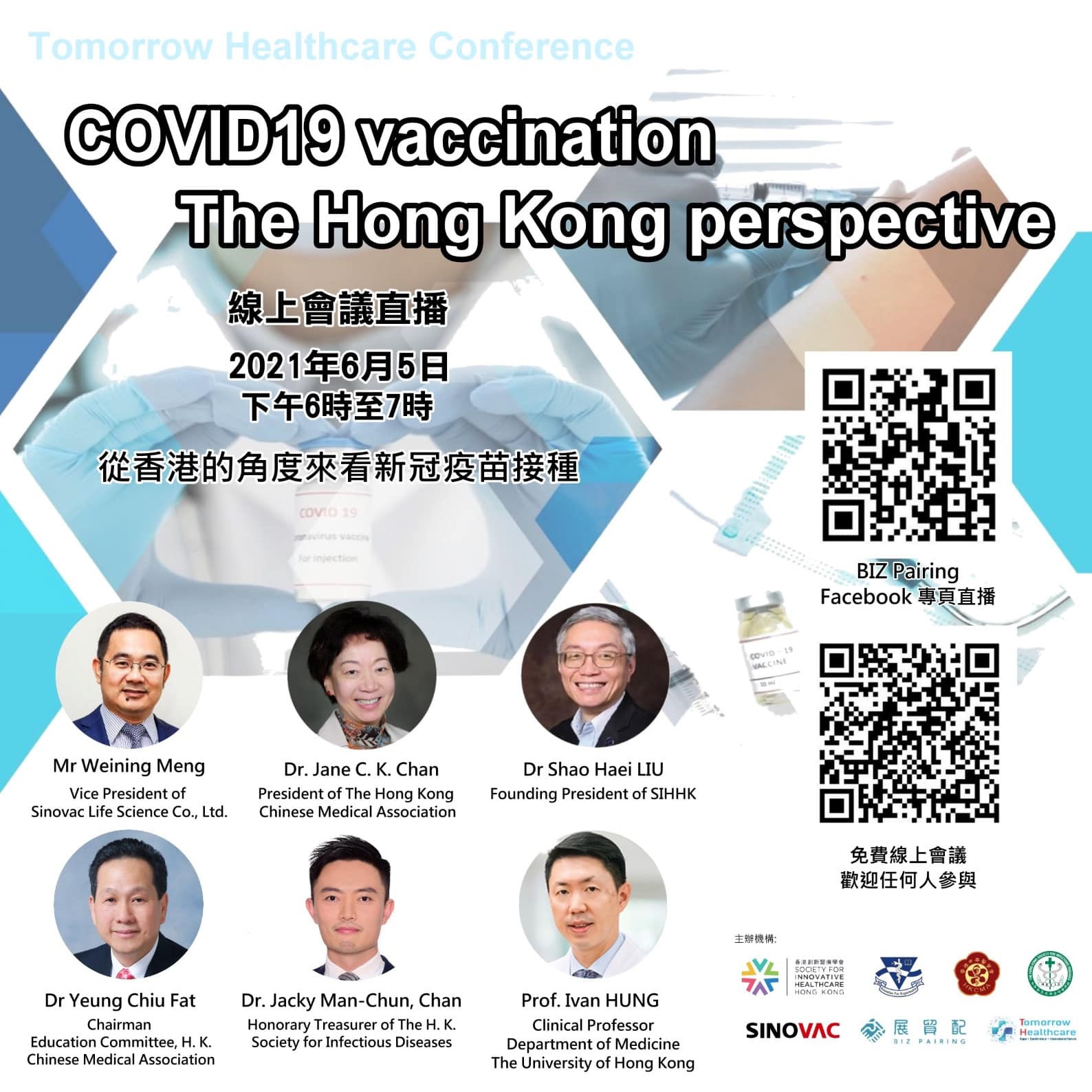 2021年6月5日下午,在香港正式啟動新冠疫苗接種工作的第100天的日子,為促進香港和大陸地區在新冠疫苗研究和使用領域的交流和合作,讓香港民眾進一步了解新冠滅活疫苗,香港中華醫學會組織召開了「從香港的角度來看新冠疫苗接種」線上學術交流會議。會議由展貿配—創偲國際企業有限公司創辦人蕭英傑先生主持,來自香港大學、香港中華醫學會、香港傳染病學會以及香港創學會等多位專家學者參加了此次交流會議。