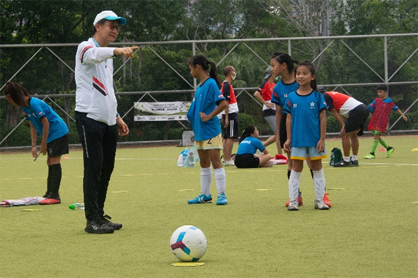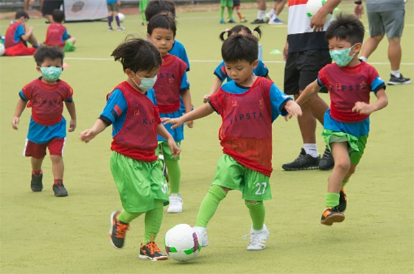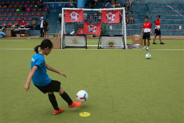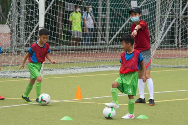 除了比賽,草根足球節現場還設有盤球及射門等遊戲,小朋友在教練帶領下積極嘗試。