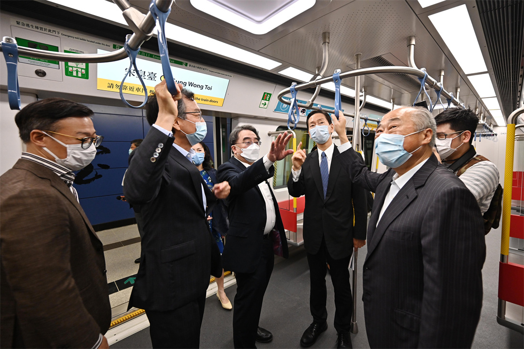 行政會議(行會)非官守議員今日(7日)參觀屯馬線新車站。圖示行會成員由宋皇臺站乘坐特別列車前往土瓜灣站