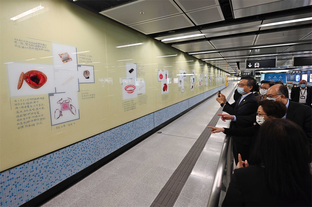 行會成員在土瓜灣站大堂觀賞由社區共同參與創作的藝術品《家》