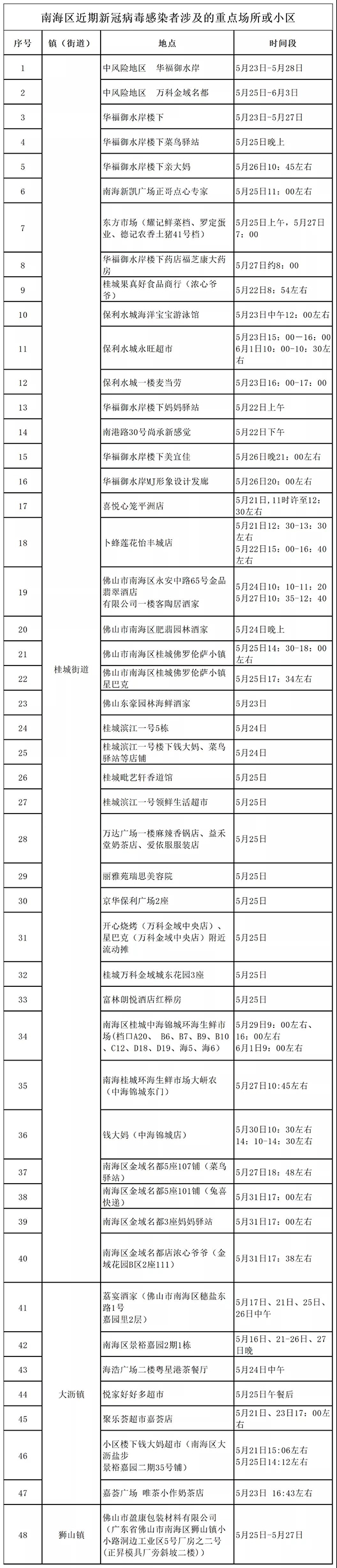6月8日,佛山市南海區新冠病毒肺炎疫情防控指揮部辦公室發布《關於近期新冠病毒感染者涉及的重點場所或小區的通報》。