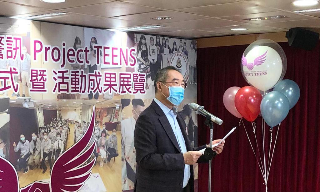 他致辭時感謝西區警區指揮官黃少卿總警司、西區少年警訊名譽會長會黃靈新主席邀請參加此次活動,並表示總會自成立以來,積極參與社會事務,尤其高度重視對青年人的培養教育,為推動青年教育不遺餘力。青年人是國家的未來,更是社會發展的重要基石,他表示十分贊同此次總會與西區少年警訊合作Project TEENS計劃,裝備青年人,使他們在未來能一展所長,回饋社會,貢獻國家。
