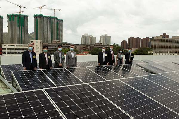 嘉賓參觀設於匡智屯門晨輝學校天台的太陽能板裝置。
