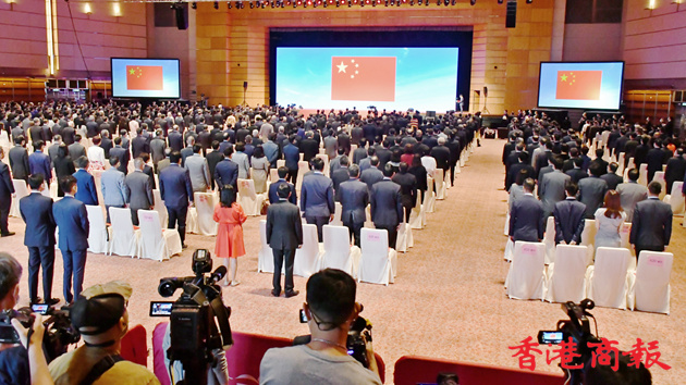 論壇由中聯辦、香港国家安全公署、外交部驻港特派员公署、解放军驻港部队聯合主辦,特邀香港特區政府主辦。全国政协副主席董建华、香港国家安全公署署长郑雁雄、外交部驻港特派员公署特派员刘光源、解放军驻港部队政治委员蔡永中少將等出席并担任主礼嘉宾。香港各界人士650餘人出席。(記者馮瀚文攝)