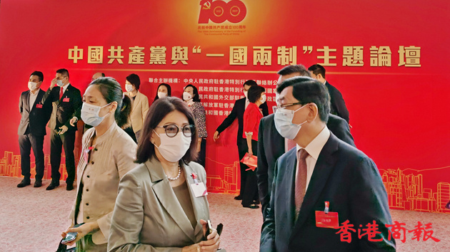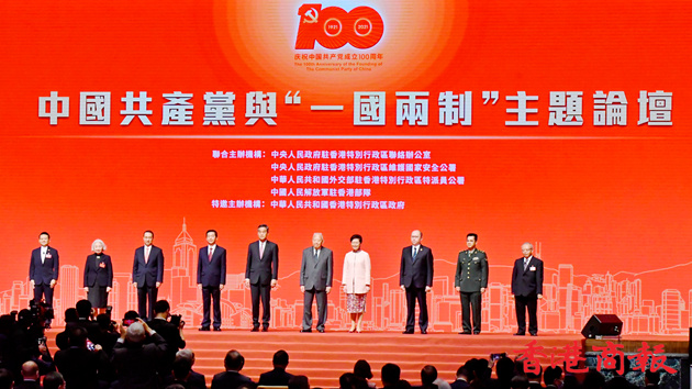 中國共產黨與「一國兩制」主題論壇今天(12日)上午在香港會展中心舉行。中聯辦主任駱惠寧作題為《百年伟业的「香江篇章」》的主旨演講,行政長官林鄭月娥、全國政協副主席梁振英先後致辭。特邀嘉賓梁愛詩、劉兆佳、陳勇,圍繞論壇主題進行了探討分享。