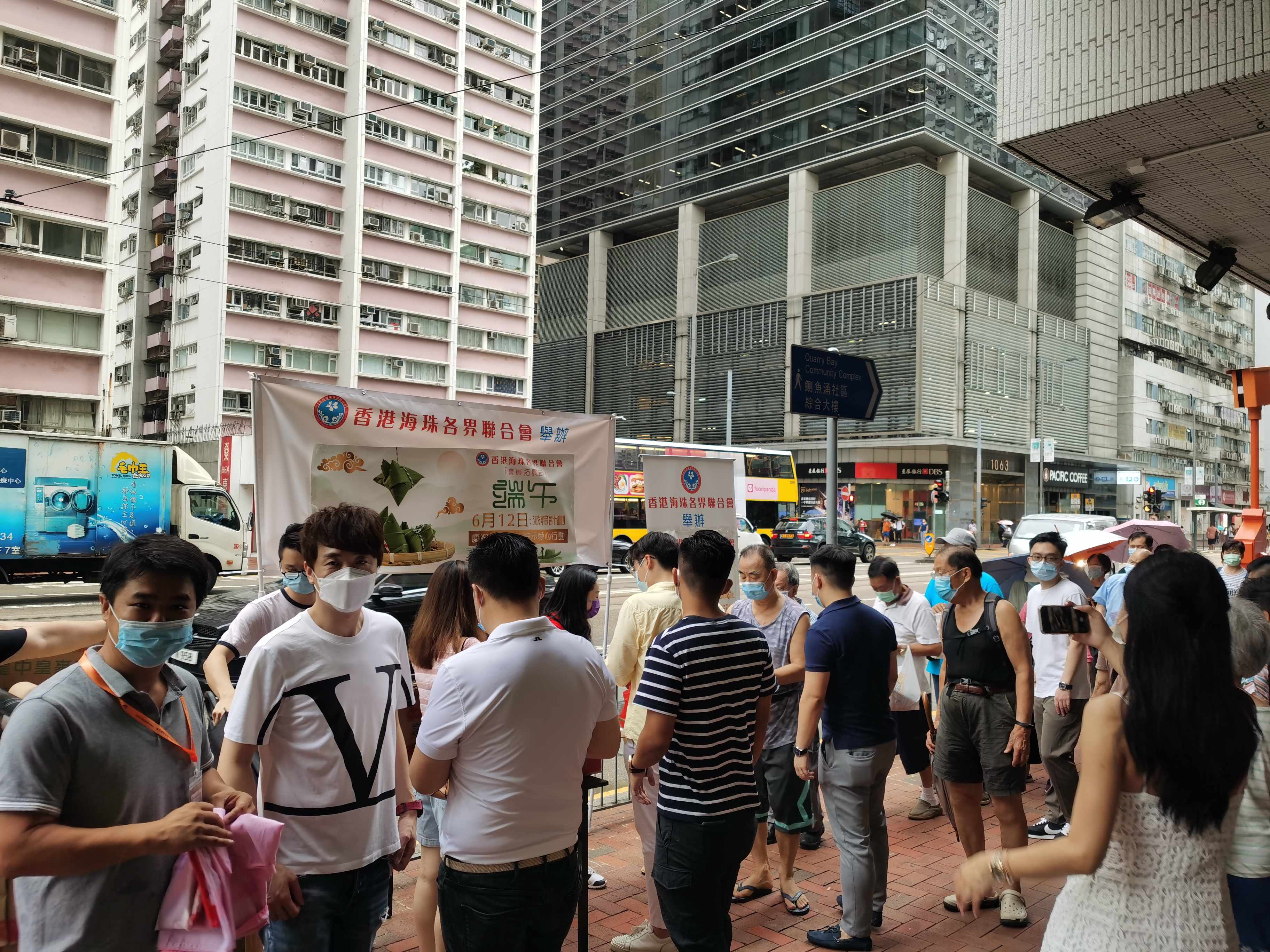 香港海珠各界聯合會主席馮翠屏表示,龍舟端午節是中國人的傳統節日,亦是鍛煉一班青年幹事的好機會。是次活動的義工以青年會員為主,她看到大家全情投入,感到十分高興,並認為他們能夠從中學習如何與社區共融,團隊協作。為方便會員及街坊領取,該會於東區多個地點分時段派發,上午派發地點為北角渣華道,鰂魚涌英皇道;下午三點派發地點在西灣河興東村,西灣河興民街。會員憑會員證及禮物信件每人可領取防疫口罩糉子兩隻禮品一份。街坊每人則有口罩一包,蛋黃鹹肉糭二只。