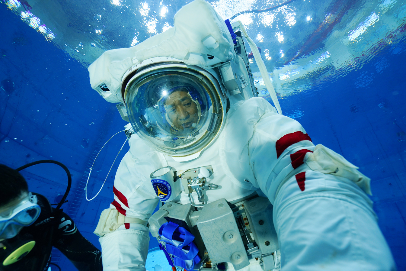 聶海勝在進行空間站任務模擬失重環境水下訓練。新华社