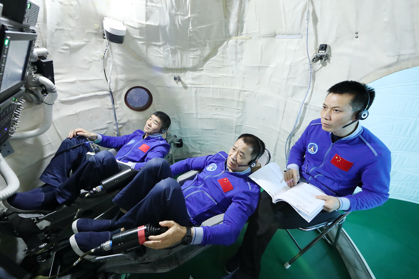 3名航天員上月在地面進行交會對接訓練。新華社