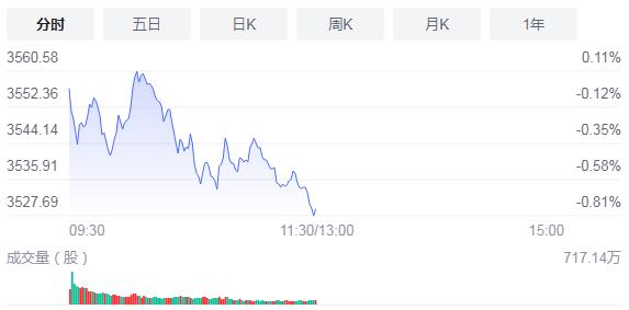 截至收盤,滬指跌0.77%,報3529.11點,深成指跌2.01%,報14377.76點,創業板指跌3.44%,報3150.09點。滬深兩市成交額近6000億元;兩市56股漲停,18股跌停(含ST)。