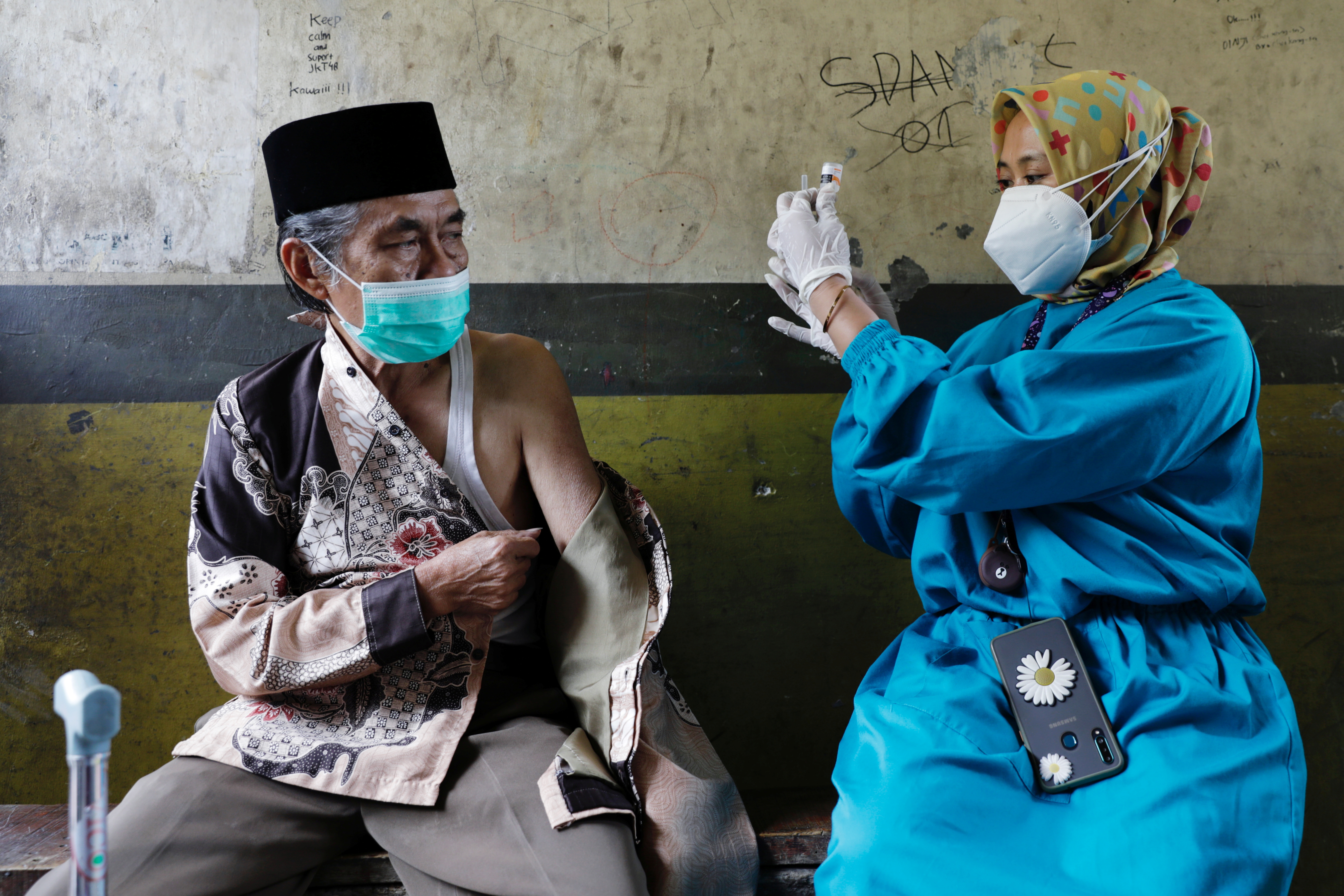 據CNN周四報道,印尼西爪哇省的展玉市為促進農村地區45歲及以上民眾接種新冠疫苗,推出「打針送活雞」活動,成效顯著。