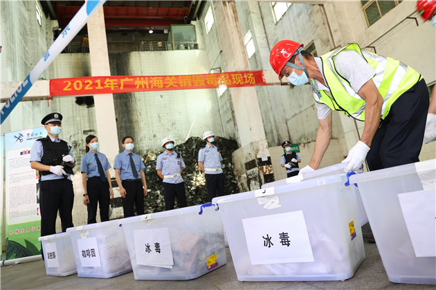在第34個「國際禁毒日」來臨之際,6月18日,廣州海關對近年來口岸查獲的412公斤走私毒品依法實施無害化銷毀,這也是近年來廣州海關銷毀毒品規模最大的一次。
