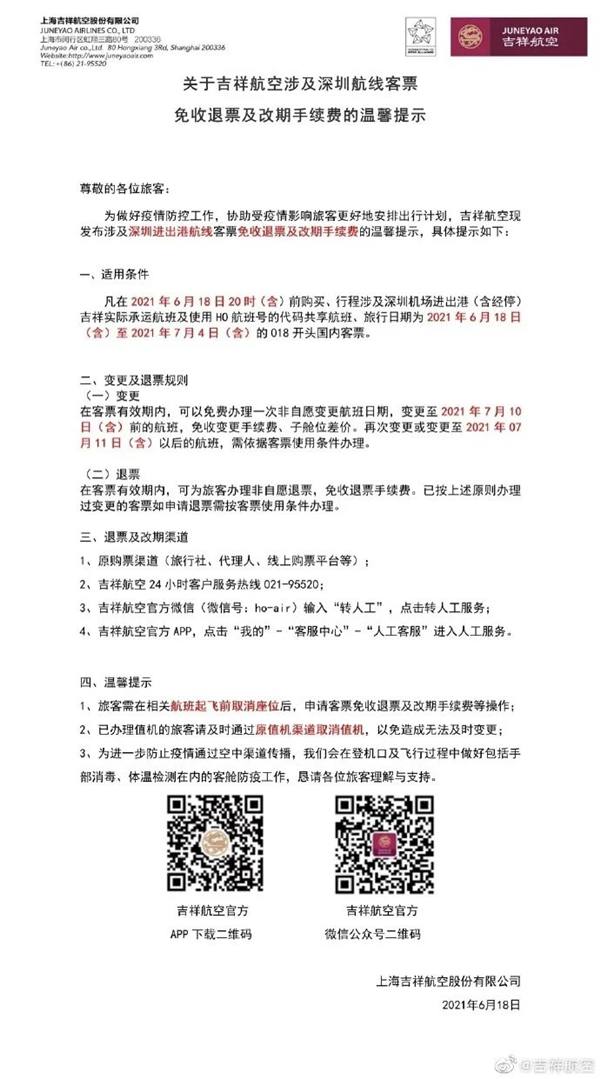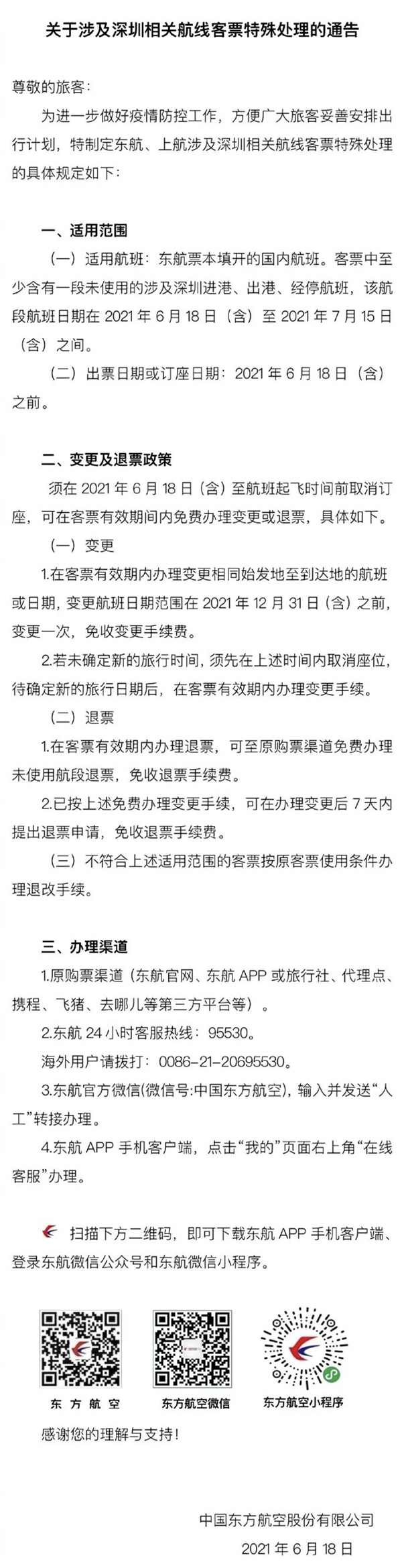 根據疫情防控要求,國內多家航空公司公布相關深圳進出港航班改退票政策。具體情況如下: