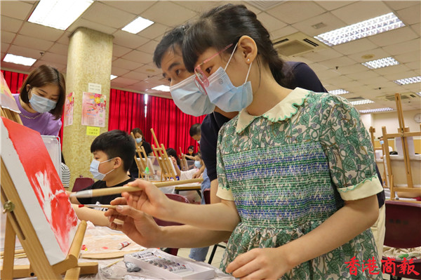 今天(20日)是父親節,大部分子女都會以陪父親喝茶吃飯作為慶祝活動。在工聯會九龍東團隊舉辦的「親子Art Jamming及兒童電子產品沉迷對策工作坊」上,邀請了30對家庭一起畫畫,當中有不少是子女和父親一起繪畫的,作為父親節慶祝活動,平時忙於工作的爸爸相對比較少與子女相處,看着他們你一筆我一筆共同完成一幅漂亮的圖畫,感覺場面很溫馨。(馮瀚文 攝)