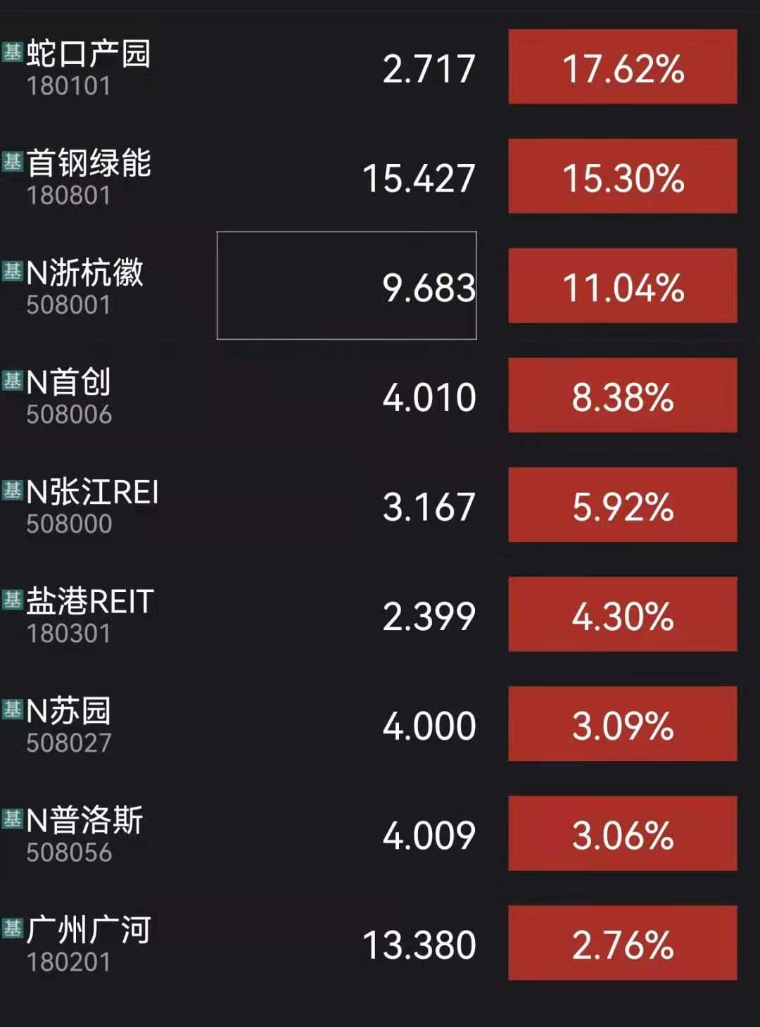 滬深交易所首批9只基礎設施公募REITs今日正式上市,開盤全線上漲,截至發稿,蛇口產園以17.62%漲幅領漲,首鋼綠能一度漲超20%。