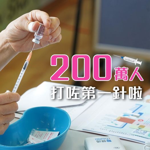 截至今日(23日)上午10時,本港接種首劑新冠疫苗人數突破200萬。