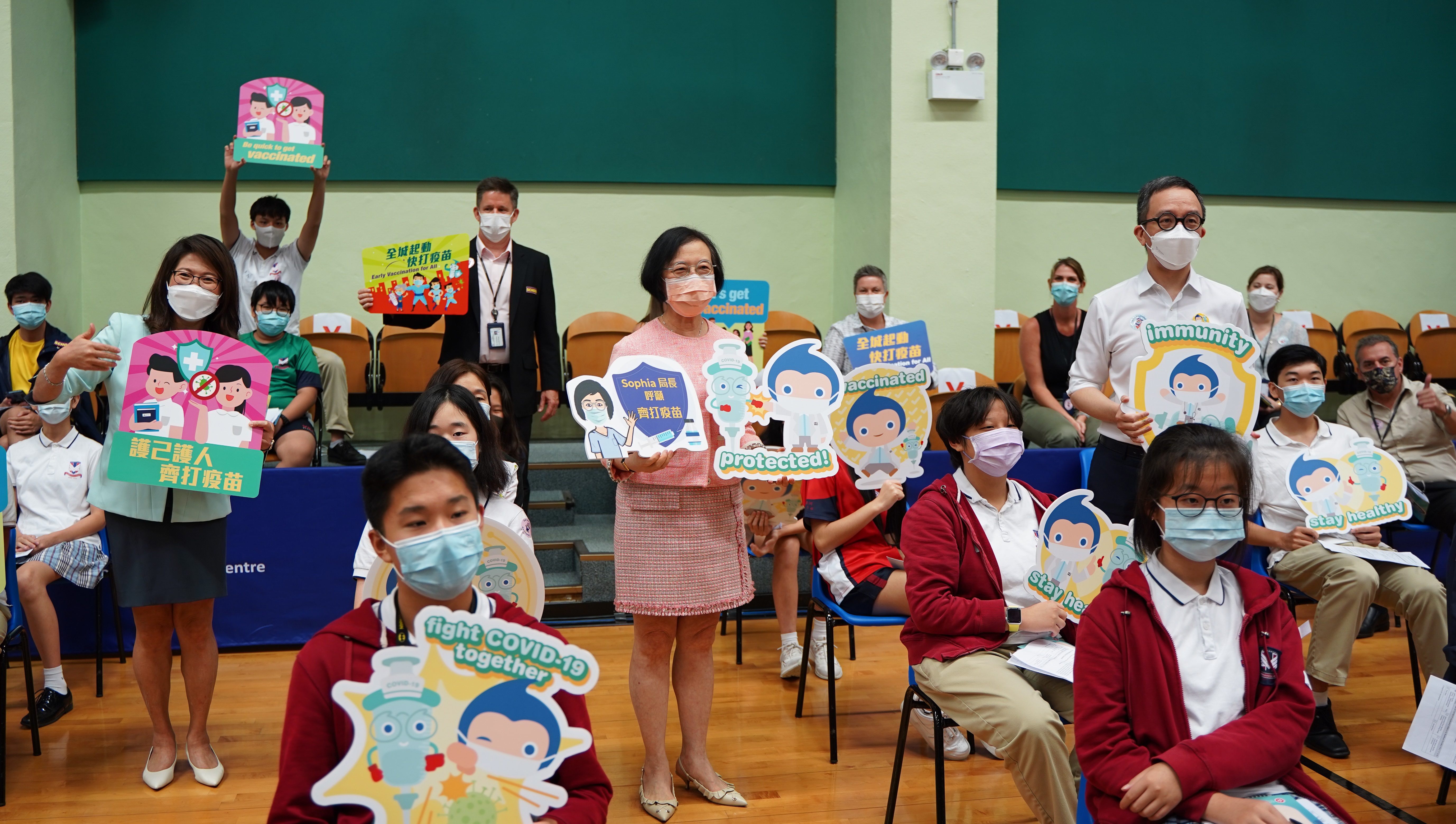 陳肇始指出,本月初參考新冠疫苗顧問專家委員會建議後,批准降低復星疫苗接種年齡下限至12歲。據藥廠提供的數據,完成接種兩劑疫苗對12至15歲青少年有顯著的保護作用,所產生的抗體水平較成年人高,能夠100%預防病發,不但可保護青少年免受新冠病毒感染,亦有助他們盡早回復正常的校園和日常生活。她再次呼籲所有學校積極參與「全城起動 快打疫苗」運動。