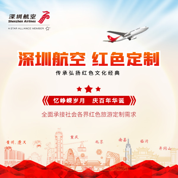 憶往昔風雨兼程歲月如歌,看今朝100年華誕風華正茂。為努力促進紅色旅遊高質量發展,鞏固拓展脫貧攻堅成果和支持革命老區振興,深圳航空加大了對紅色旅遊航線的投入力度,並依託市場和用戶資源,着力推出一系列紅色主題活動和紅色產品。