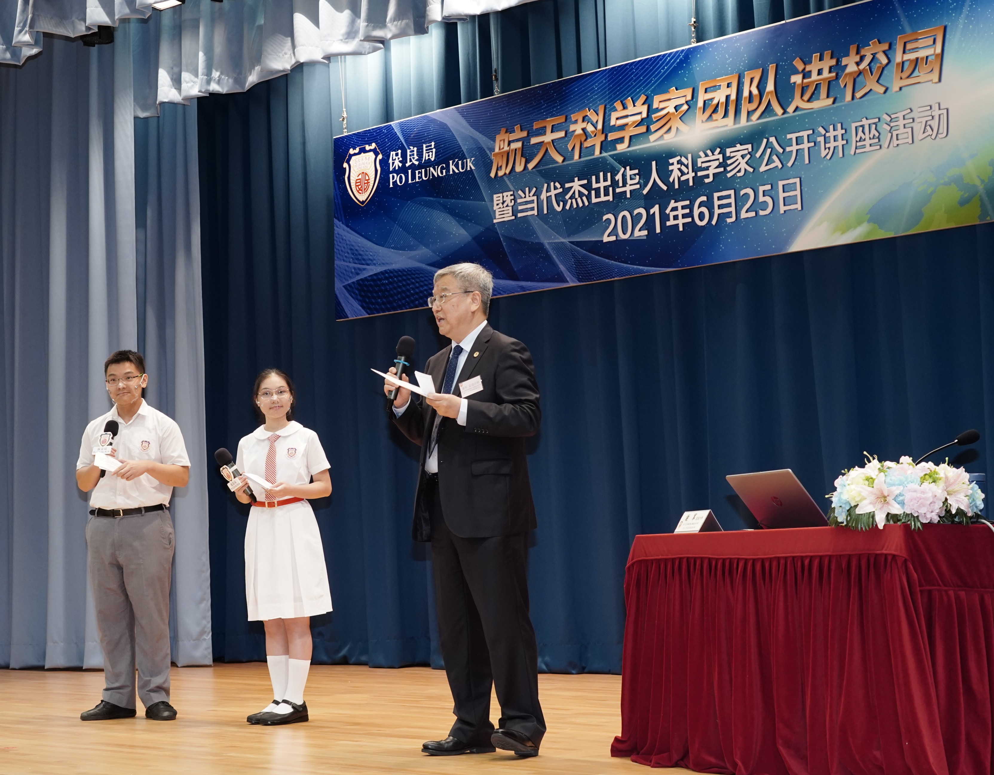 保良局副主席陳正欣在致歡迎辭時提到保良局屬校一直響應政府政策,提供完善學習環境與先進設施,例如生物科技實驗室、機械人實驗室和航空實驗室,局方也鼓勵學校進行學術研究和計劃、鼓勵學生參與本地和世界性活動,培養學生對科學的興趣;陳正欣認為今次交流活動讓學生能聽到國家航天科學家分享,定能增加他們對祖國航天科技最新發展的了解,也鼓勵學生們以祖國科學家為榜樣,效法他們不懼沉悶、反覆鑽研,為國家發展作出貢獻。