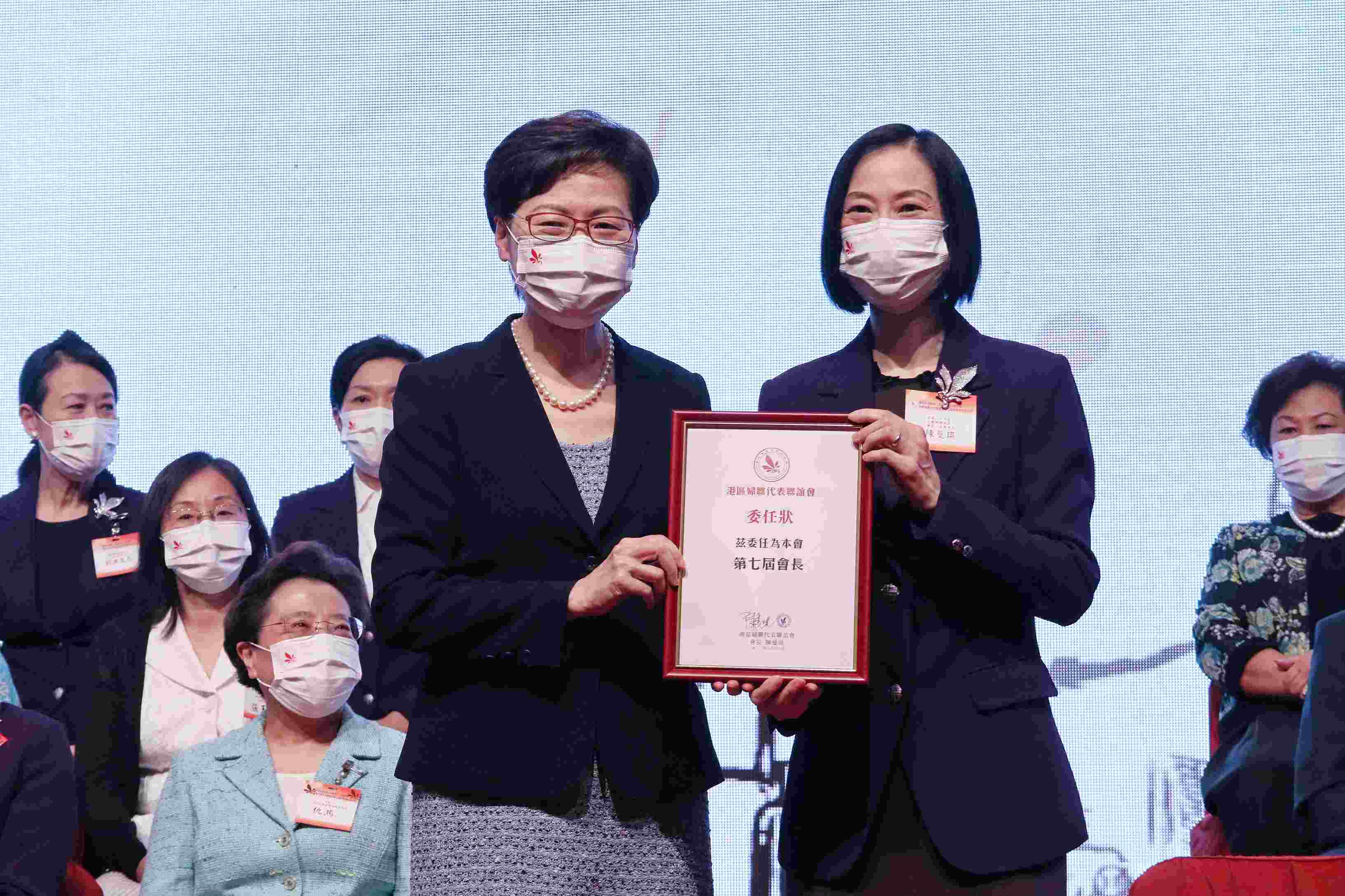 林鄭月娥向陳曼琪頒發會長委任狀。