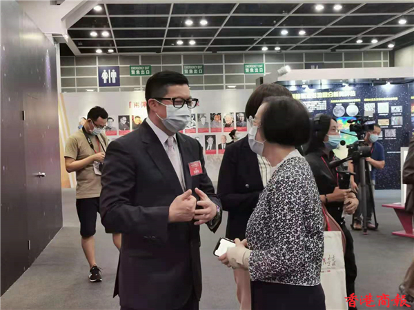鄧局長也是一身深色西裝,打了一條粉紅色白點的領帶,顯得特別精神喜慶。但卻沒有辦法專心看展覽,因為不斷有人跑過來寒暄和祝賀,還有一些嘉賓像小粉絲似的過來說「能不能合張照」,鄧局是有求必應。不少人除了祝賀就是誇獎,讚鄧局之前在警隊做得非常好,感謝他還香港一份安寧,弄得這位前一哥還有點不好意思。