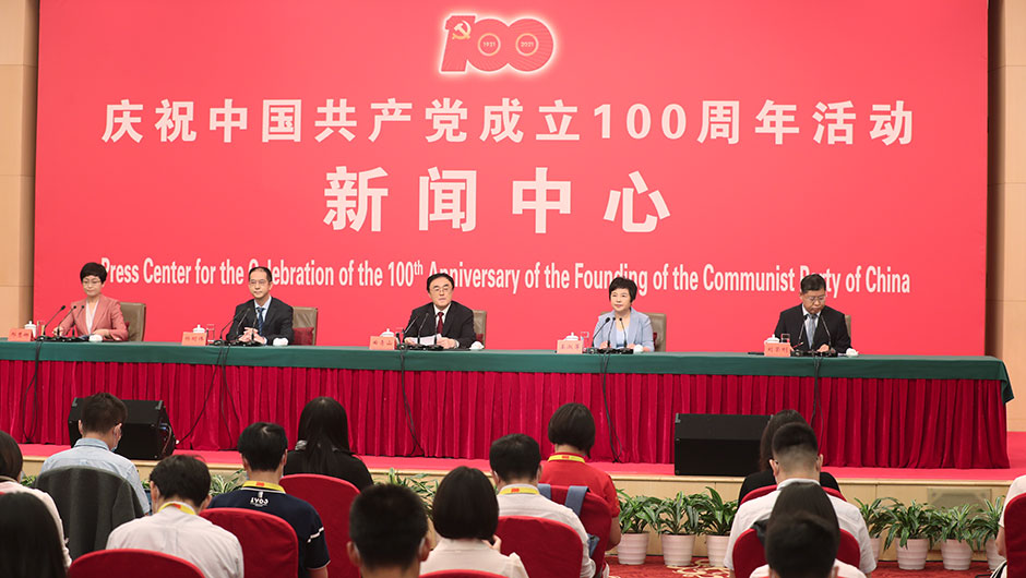 下午15時整,中共中央黨史和文獻研究院院長曲青山、第三研究部主任姜淑萍、對外合作交流局局長楊明偉、第七研究部副主任劉榮剛等在慶祝中國共產黨成立100周年活動新聞中心負責人、中共中央宣傳部對外新聞局副局長邢慧娜的引導下進入會場,圍繞新時代的黨史和文獻工作進行介紹並回答記者提問。