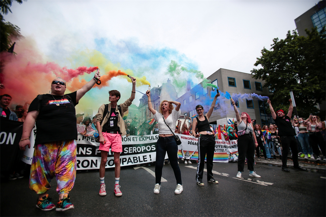 遊行隊伍拿著彩虹旗和各種標語牌,從巴黎邊陲的龐坦(Pantin)出發,前往市中心、許多政治性遊行的集合點「共和國廣場」(Place de la Republique)。這是這項遊行首次從法國首都巴黎屬勞工階級的郊區出發。