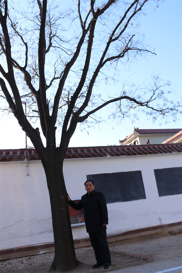 樂化集團董事長沈孝業在當年栽下的「小槐」旁