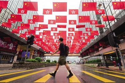 連日來,香港街頭節日氣氛亦漸濃。街頭出現許多「賀建黨百年」「慶香港回歸」的喜慶元素。
