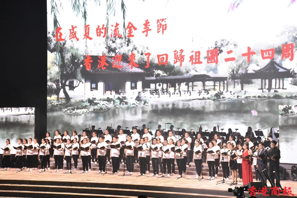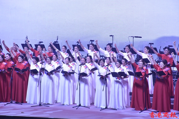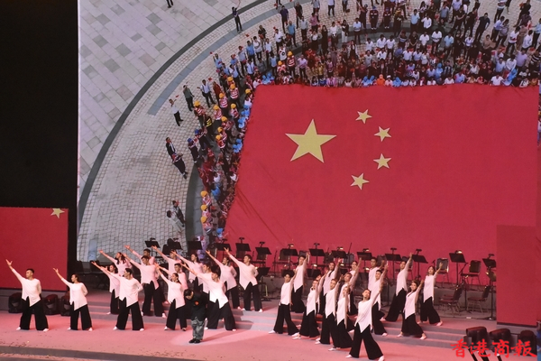 晚會分為5幕,第一幕《救亡圖存》(1840-1949),闡述香港及香港青年在我國近代爭取民族獨立和人民解放中的作用;第二幕《照亮東方》(1949-1978),講述這一時期國家對香港的支持,以及香港為打破西方封鎖作出的貢獻。第三幕《春回香江》(1978-1997),闡述香港在國家改革開放中的獨特地位及新一代香港青年企業家到內地投資興業的歷史。第四幕《紫荊綻放》(1997-2021),闡述在祖國堅強後盾的支持下,回歸後的香港浪漫風采依然、魅力更勝往昔,以及香港青年取得的新成就。第五幕《嶄新篇章》(2021-至今)闡述國安立法和完善選舉制度,迎來了由亂及治的歷史性轉折,掀開了香港良政善治的新篇章,為香港青年融入國家大局、實現自身發展、創造美好未來,提供了良好的社會環境。(記者呂明霞 圖片:馮瀚文/攝)