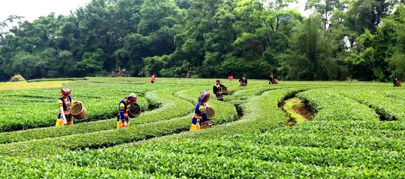 曲江是韶关重要茶产区,茶叶品质优良,产量较高。图为曲江罗坑瑶家女喜采春茶 龚光年摄
