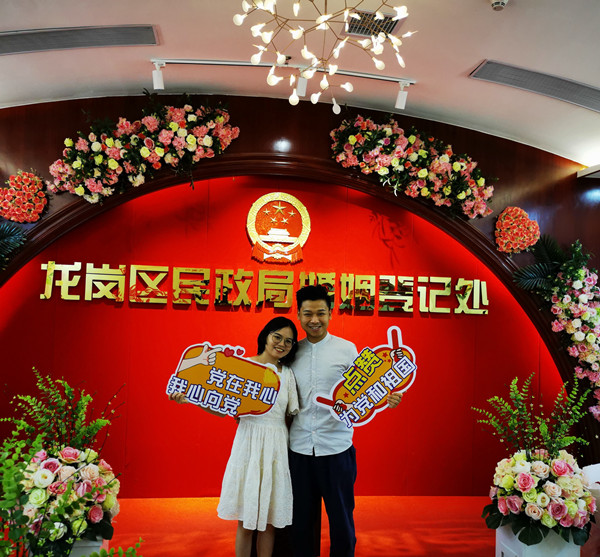 為了滿足新人們在特殊日子結婚的美好願望,龍崗區民政局提前謀劃、精心組織,備足防疫物資,做好疫情防控;營造喜慶環境,優化工作流程,確保登記業務安全有序、便捷高效進行。全體工作人員秉承「耐心、細心、暖心、盡心」的服務理念,提前上班,延遲下班,中午不休息,為前來辦理婚姻登記人員提供優質高效服務。(記者朱開芝 通訊員彭軍)