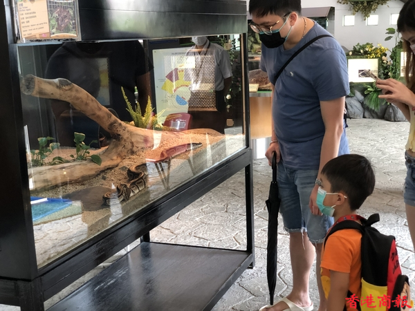 啟用於1999年的爬蟲館,是首個康樂及文化事務署設立的爬蟲館。該館位於屯門公園內,總面積約500平方米。爬蟲館的設施包括室內展覽缸及露天展覽場,展出不同品種的爬蟲類動物及相關資料,展館現有約52隻活展品,當中包括地氈蟒、傘蜥、高冠變色龍、大壁虎、星龜、盾臂龜、綠鬣蜥、長鬣蜥、藍舌石龍子等。爬蟲館每年的入場人次達40萬,現已成為屯門公園的主要景點。(記者馮俊文/攝)